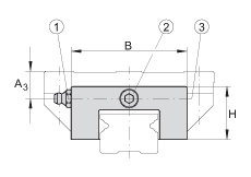 潤滑脂嘴和堵頭螺栓可互換使用,螺紋相同。 - 在系列 KUE..-H,潤滑脂嘴或者潤滑油接頭大約伸出滑塊 9mm。 潤滑脂嘴和堵頭螺栓可互換使用,螺紋相同。