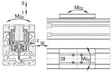 - 滑塊導軌系統的許用扭矩 此數值只適用于 Lh 壽命的計算。 這些數值是單一載荷,當執行器的下部完全被支承時使用。這些值和單個滑塊有關。當承受聯合載荷時,這些值必須減小。