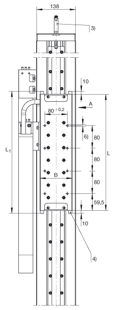 - L2 = 總行程 + L1 + 54 Ltot = 總行程 + L + 54 + 86 總行程= 有效行程 + 2 x S 允差 S 指適合于特殊應用的安全范圍,至少應為50 mm;總行程單位為mm。 最大單根支撐軌長度 L2 = 8000 mm