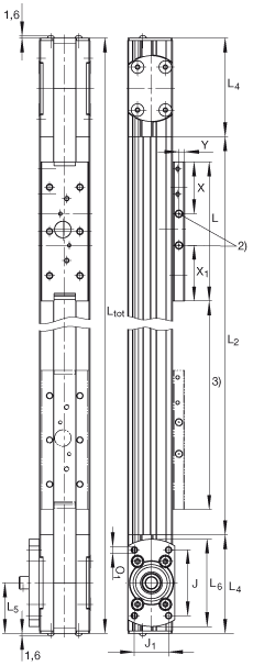 - L2 = 總行程 + L + 40 L tot = 總行程 + L + 40 + 2 x L4。 總行程= 有效行程 + 2 x S(mm)。 注意:允差S指一個安全范圍,至少應為40 mm。 最大支撐軌長度2000 mm ;通過協(xié)商可提供更長的支撐軌