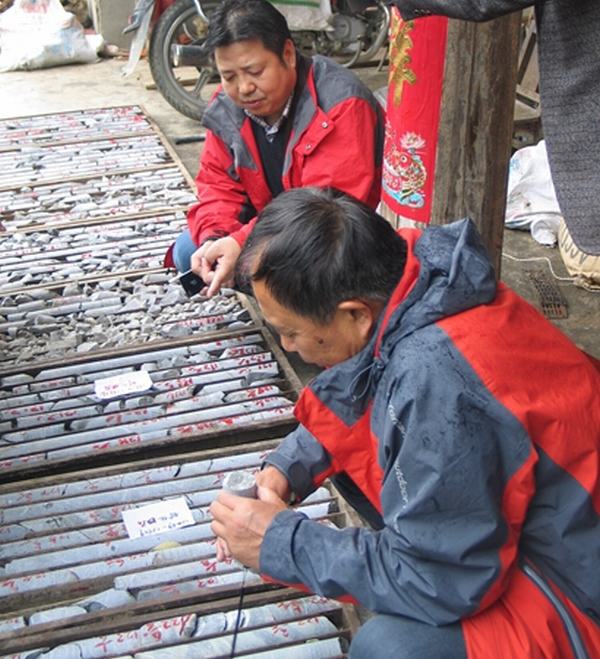 4月8日—11日,地礦總公司總工程師齊文同志和我公司總經(jīng)理邢憲龍同志,分別代表地礦總公司和我公司帶領(lǐng)有關(guān)技術(shù)領(lǐng)導(dǎo)組成的檢查組奔赴寧強(qiáng)縣冷家溝金礦區(qū)檢查、指導(dǎo)礦產(chǎn)勘查評價(jià)工作。4月9日,邢憲龍同志帶領(lǐng)檢查組人員進(jìn)入冷家溝礦區(qū)檢查指導(dǎo),邢憲龍一行與野外技術(shù)人員一起冒雨仔細(xì)觀察每一個(gè)礦化現(xiàn)象和鉆機(jī)施工情況,并與技術(shù)人員在現(xiàn)場共同討論、研究礦化蝕變及礦化與構(gòu)造的關(guān)系等地質(zhì)礦產(chǎn)問題。4月10日,地礦總公司總工程師齊文與礦產(chǎn)開發(fā)部主任馬貴鎖一行到我公司冷家溝礦區(qū)野外檢查指導(dǎo),檢查組檢查了多處礦化露頭、鉆機(jī)現(xiàn)場和巖芯,還冒著大雨在礦區(qū)老鄉(xiāng)的屋檐下,觀看巖芯標(biāo)本、聽取項(xiàng)目組的匯報(bào)并檢查野外資料。