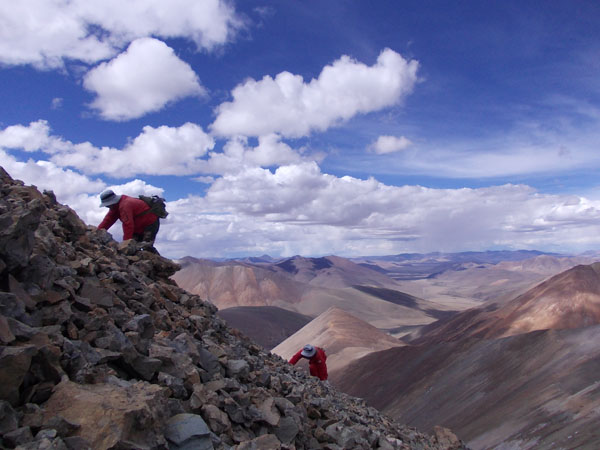 該項目是中國地質調查局2013年地質礦產調查評價專項總體部署在西藏地區重點成礦區帶——岡底斯成礦帶的地質礦產調查項目。工作周期為3年,調查區行政區劃屬阿里地區措勤縣管轄,區內人跡罕至,交通情況極差,最低海拔在5000m以上,最高海拔在6296m。我院工作人員通過近3年的辛苦工作,克服了洪水、野獸出沒等困難,取得了較大的地質礦產成果。地質方面,完成區調填圖面積1779km2、合理建立了調查區的地層層序、新發現了多個地質單元、厘定了調查區內的火山噴發旋迴及韻律、建立了調查區的侵入巖序列等;礦產方面,共新發現1處鉛鋅多金屬礦點、1處銅多金屬礦化點和3處黃鐵礦礦化蝕變帶,其中西藏措勤縣瑪圭鉛鋅多金屬礦點海拔在5700-6100m,共發現12條礦體,2條礦化體,礦體最長在500m,最寬在100m,Pb最高品位6.19%、Zn4.87%、Ag278g/t,具有較大的找礦潛力。(姚勝 文/圖)