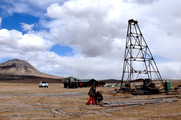 2012年,項目鉆探工作遇到前所未有的困難。由于交通條件太差,加之高原缺氧,原先干過的鉆探隊再也不去了。時任所長張占武聯系了所有能聯系的鉆探隊伍,都沒有人愿意干。只有自己組織隊伍了。在青海省雇傭了一批鉆探人員,租賃了3臺鉆機。筆者主動承擔了工作任務,和年輕的項目負責閆磊一起,帶領大家,克服難以想象的困難,把人員、鉆機運送到工區。要開鉆了,我們買了鞭炮、蠟燭、水果、豬頭,祭拜莊嚴的昆侖山。缺氧的高原、無休止的大風,放置在雪地里的蠟燭,點了十幾分鐘也沒成功。在內地震耳欲聾的鞭炮,在昆侖點燃后,也如同麥秸燃燒一般了無生氣。