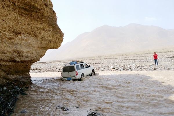 此波險情過后,行進到目的地已是第六天。地圖上標注的水源地、河流都是季節性的。當時冰雪尚未消融,沒用飲用水咋辦?帶的瓶裝水所剩無幾,項目當即決定下山。由于一周時間沒有獲得正常飲食和休息,大家都已經到了生理極限。第七天,每人只剩一瓶水。沒有道路,車輛行進十分困難,幾乎是走幾步就要挖路墊石頭,一百多公里的路走了兩天。這天傍晚,終于到了山口,大家十分興奮,有人說,到民豐縣吃烤肉。我也興奮地拿出相機拍照慶祝。沒想到后面的70公里沙漠,又給大家結結實實地上了一課。陷車、挖車、陷車、挖車……,第二天早晨到達民豐后,大家倒頭就睡,再也沒有人說想吃烤肉了。