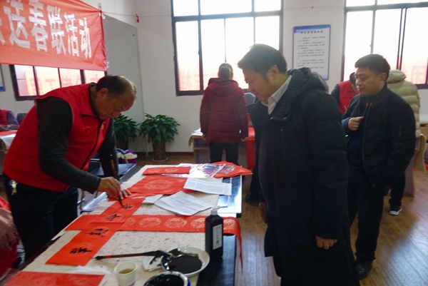 老干部書畫志愿者個個神彩奕奕、氣宇軒昂、充分展示了老干部藝術家的時代風采.近300幅春聯行云流水、栩栩如生,飽含著對中華民族偉大復興中國夢的憧憬和對新時代輝煌成就的謳歌與贊美,春聯既有喜迎金豬辭舊迎新的美好愿景,也有歌頌黨、歌頌地礦事業的美好詩句,更有歌頌偉大祖國、人民幸福安居樂業的詩情畫意.春聯不僅書法功底神韻,而且是對地礦人無悔人生的真實寫照。活動現場,雖然數九嚴寒,但卻洋溢著春天的氣息.7位書畫家獨具匠心,揮毫潑墨,為我院職工群眾奉獻了藝術享受和新春佳節最美好的祝福,深受廣大職工群眾和離退休人員的熱愛和贊美!